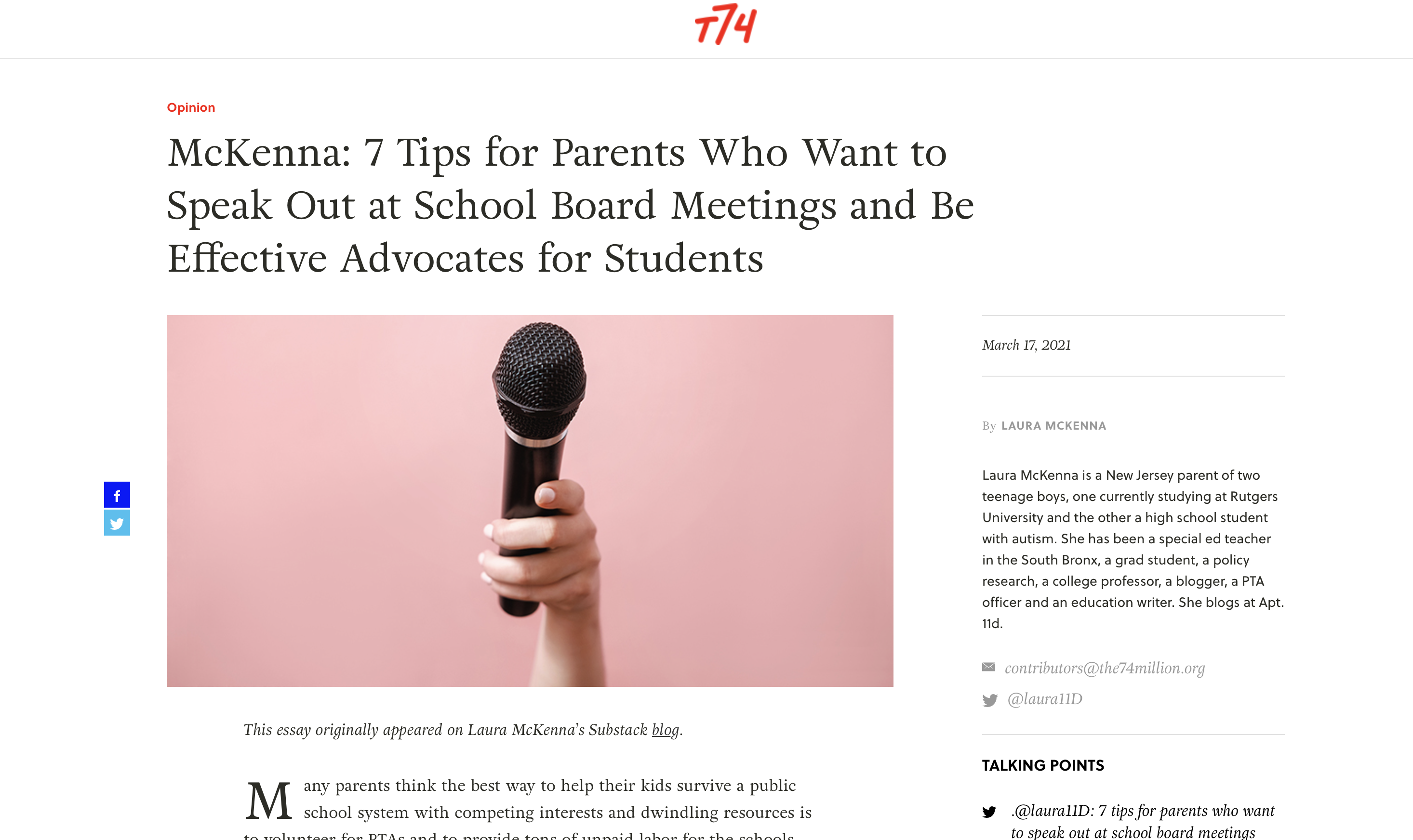 Thanks to NJ Education Report and The 74 for reprinting my tips for speaking at school board meetings.